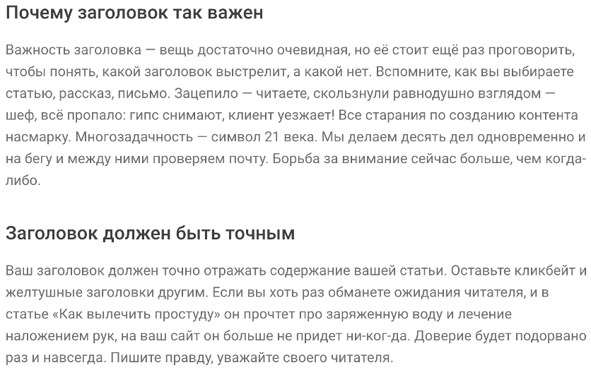 Ещё один важный элемент, относящийся к теории близости – заголовки. Заголовки интернет-статей на сайтах, блогах должны быть расположены в непосредственной близости того текстового блока, который они озаглавливают. Как, например, здесь: благодаря более близкому к тексту расстоянию заголовка мы понимаем, к чему именно он относится.